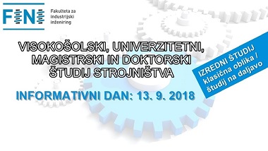 V četrtek, 13. septembra 2018, ob 16. uri vabljeni na informativni dan, na sedežu fakultete v Novem mestu, Šegova ulica 112, kjer vam bodo podrobneje predstavili programe, vpisni postopek in organizacijo študija.